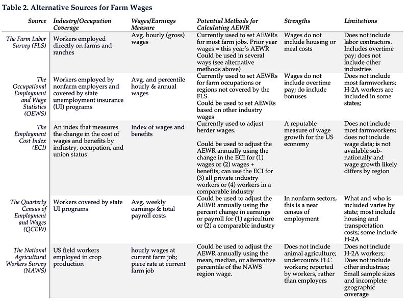 The report presents a comprehensive overview of alternative data sources for constructing AEWRs and details the advantages and drawbacks of each. This is summarized in Table 2, but discussed in further detail in the report.